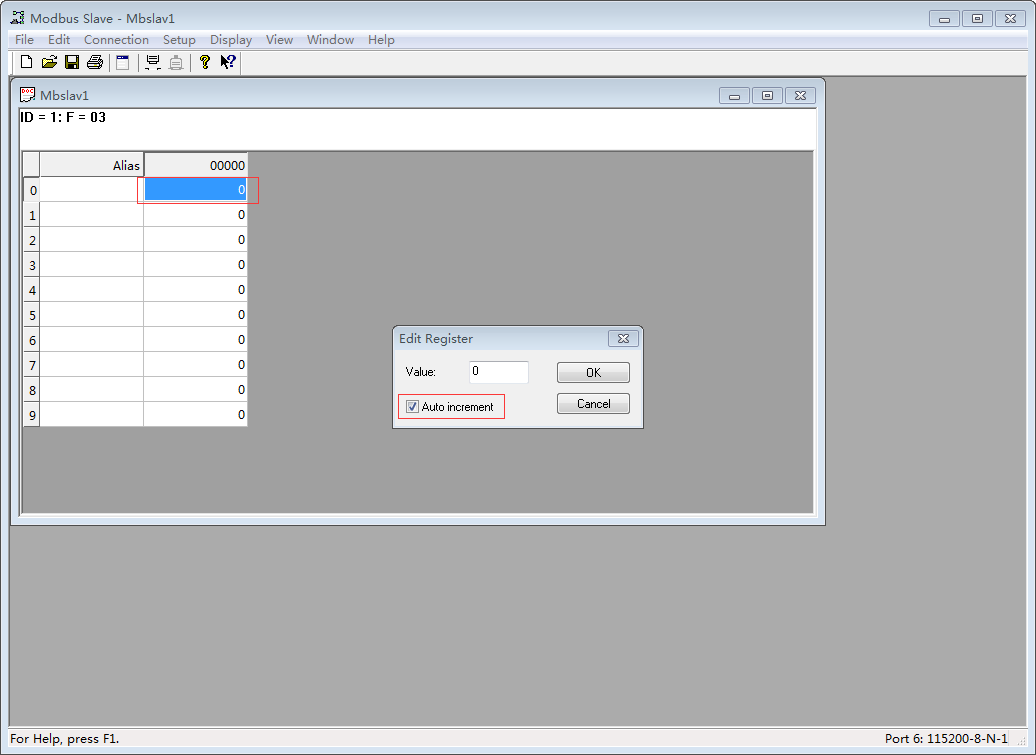 9.   Config Modbus Slave, double click address 0 then config it as auto increment.